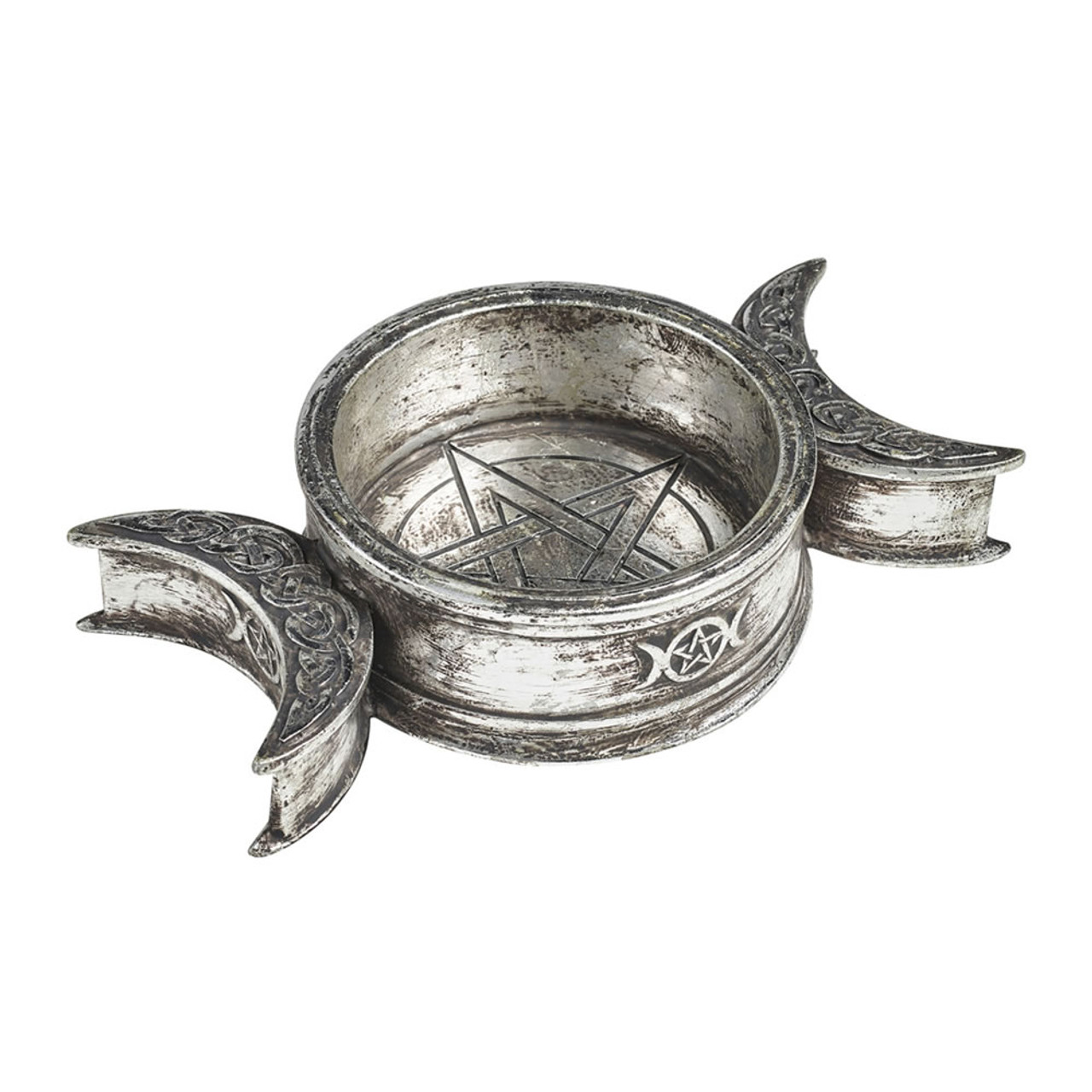 Dit heidens geïnspireerde sieraden- en snuisterijenschaaltje kan ook gebruikt worden als kaarsenhouder. Het krachtige Triple moon ontwerp voegt direct een vleugje magie toe aan je huis, altaar of spirituele ruimte. Ook een betoverend cadeau voor iedere Wicca- of pagan-liefhebber.